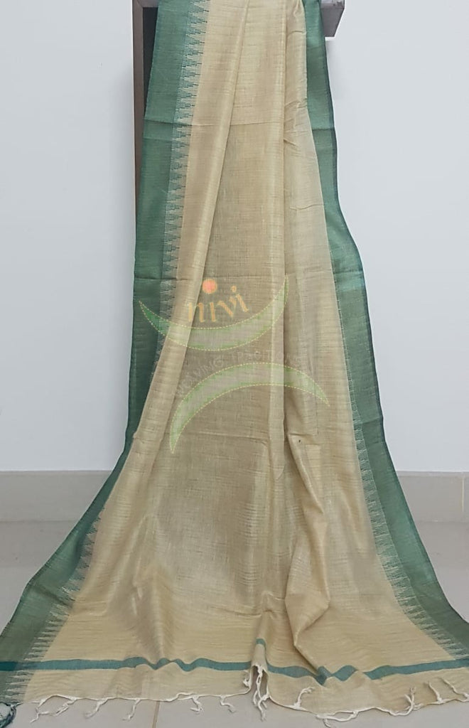 Beige and green combination handloom silk blend dupatta with traditionally woven temple border.