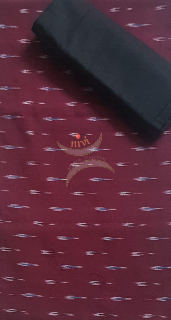 Black and maroon combination handloom pochampalli ikat 3 piece suit set.