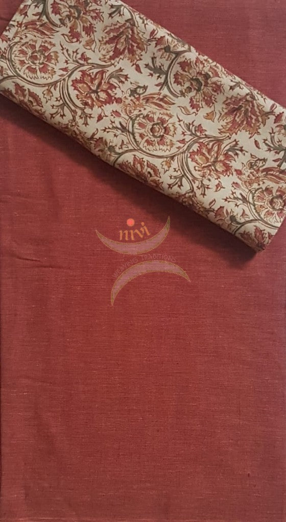 Brown handloom mangalgiri top and kalamkari printed bottom and dupatta