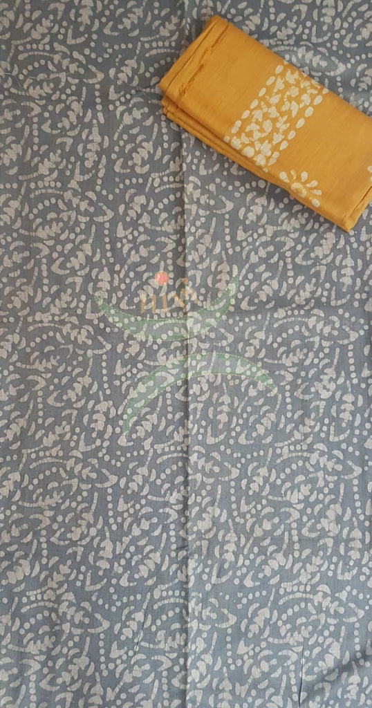 Charcoal grey with Mustard handloom silk batik printed 3 piece set