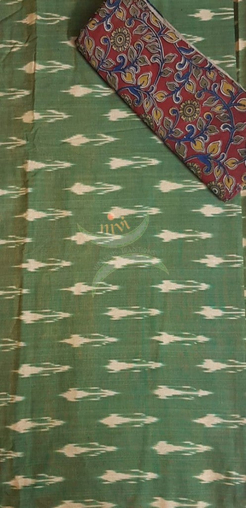 Handloom kalamkari dupatta bottom and handloom ikat top material. 3 piece set
