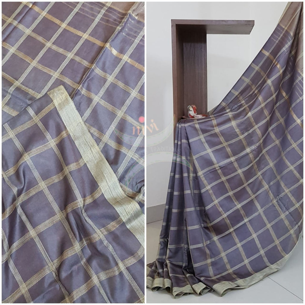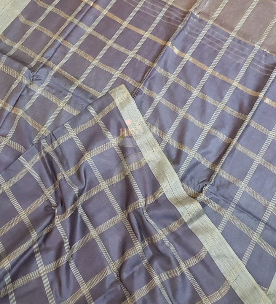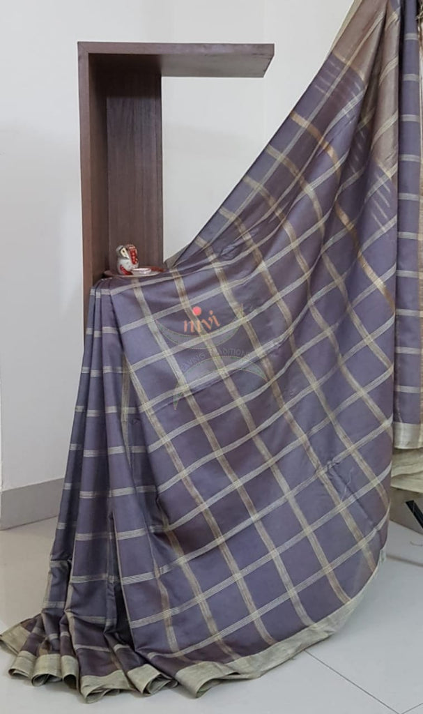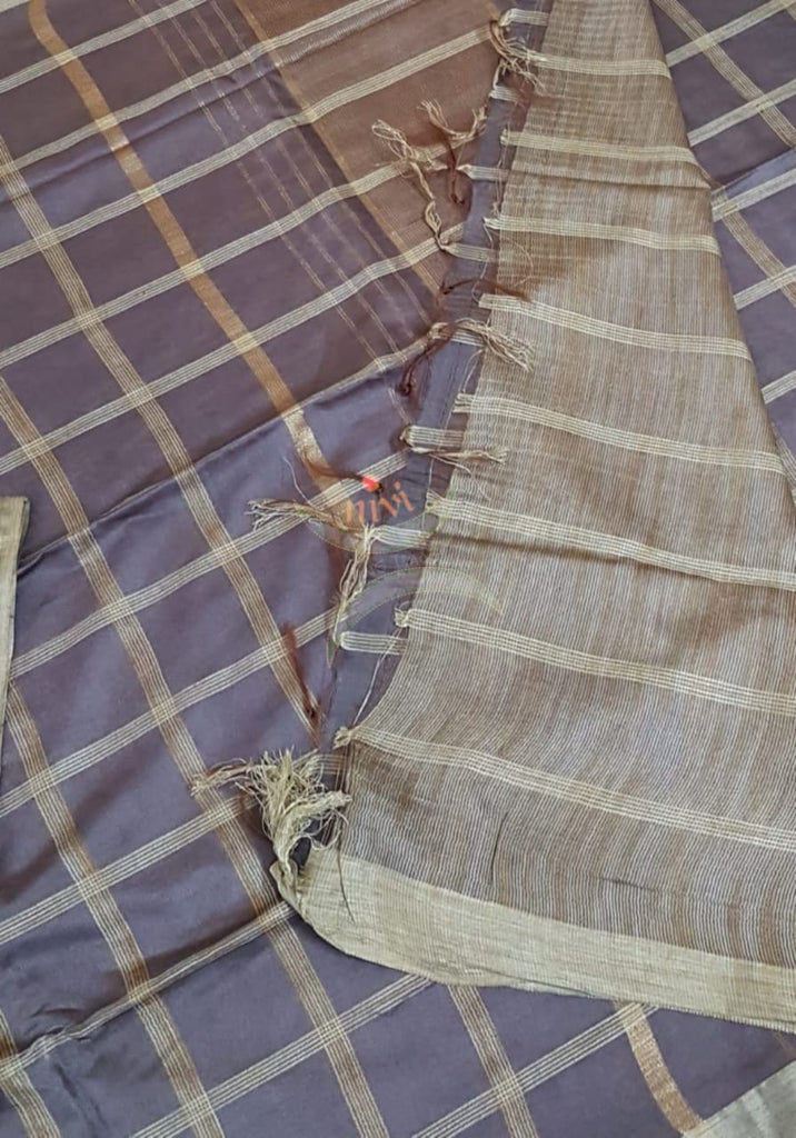 Grey Bagalpuri cotton blended saree with geecha blouse, pallu and border. Saree comes with geecha blouse.