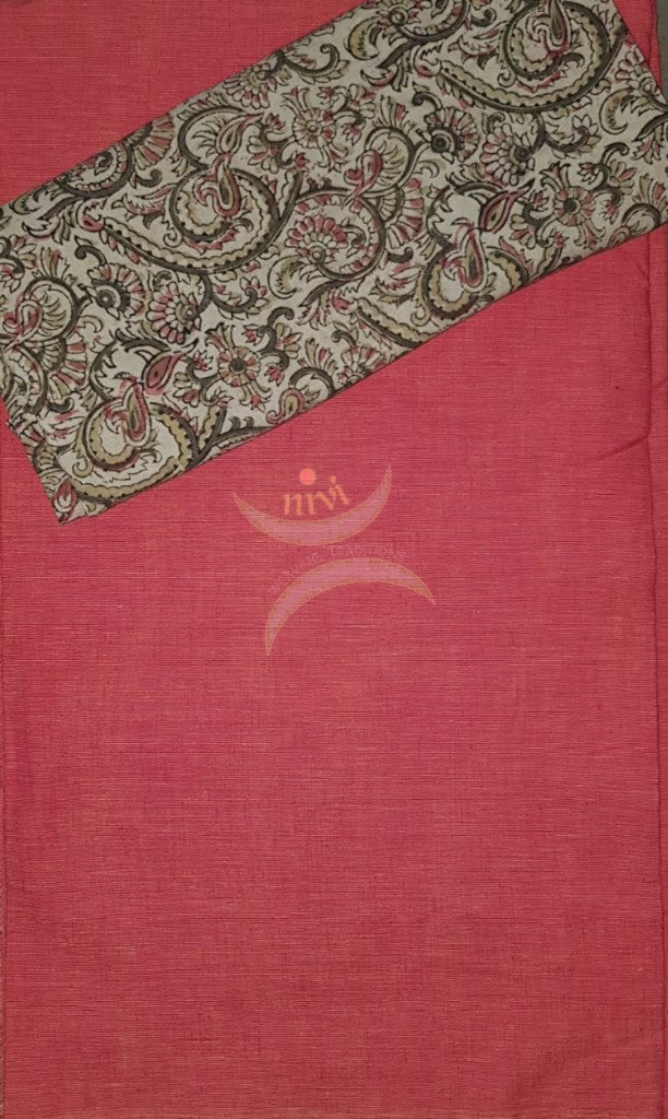 Handloom kalamkari 3 piece suit set with brick red mangalgiri top and kalamkari printed bottom and dupatta