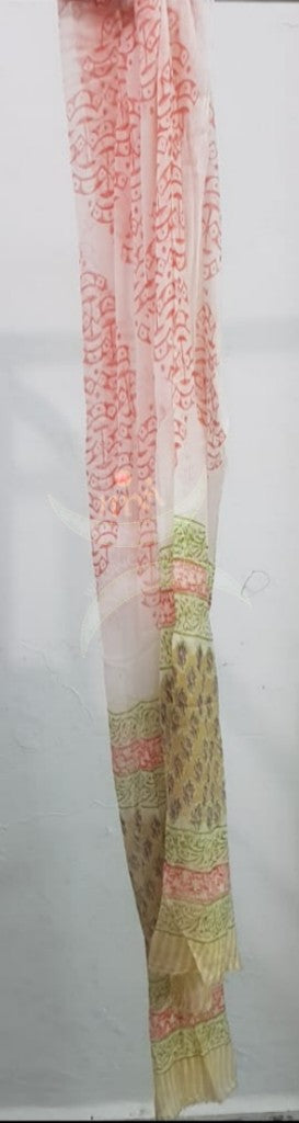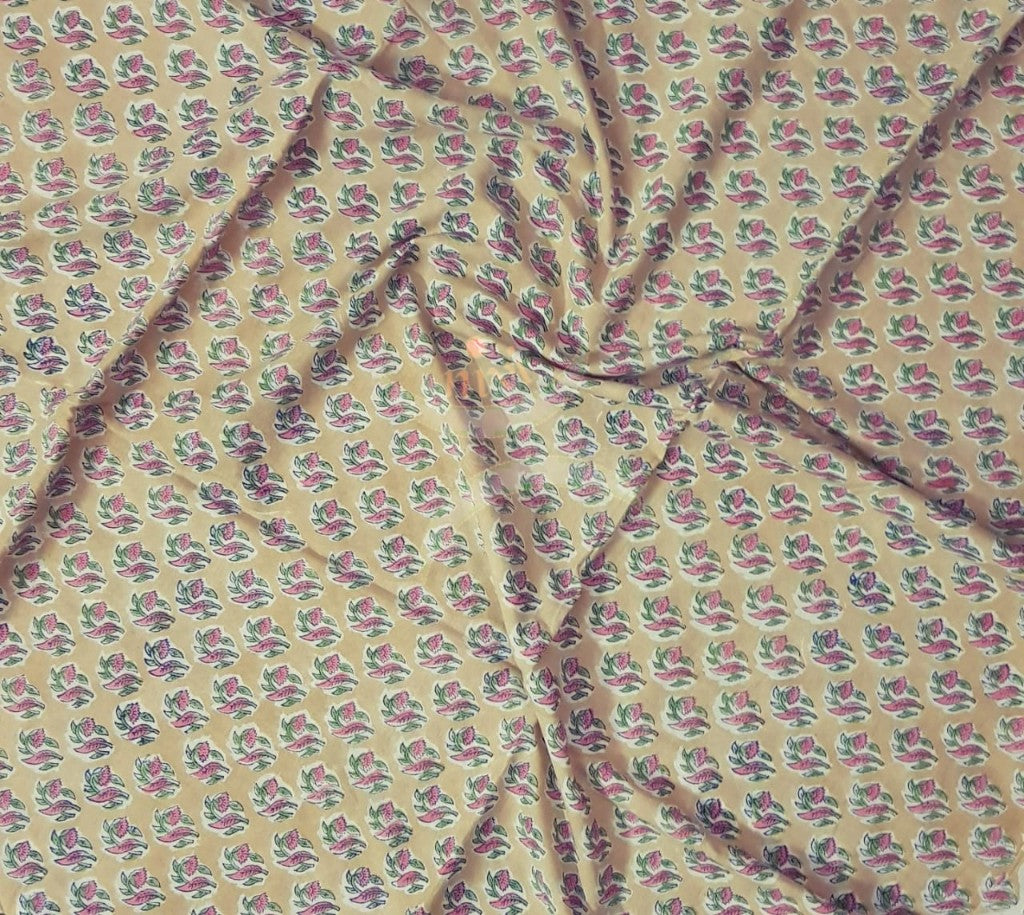 Handloom Mustard hand block printed dress material with floral motif and chiffon dupatta.