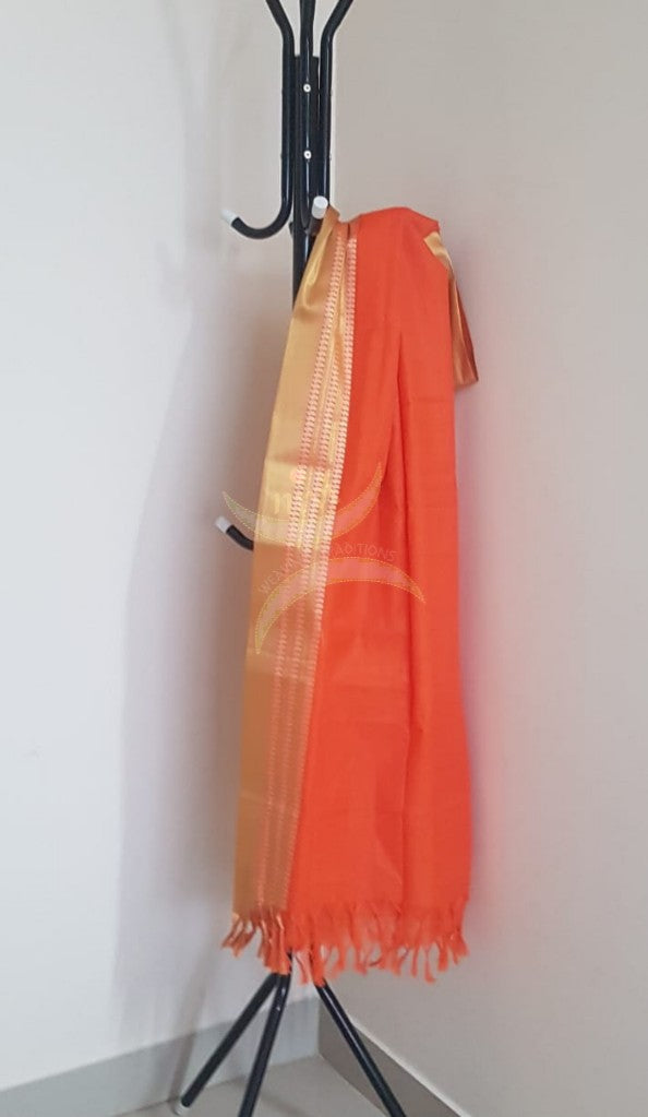 Orange kota cotton dupatta with gold zari borders.2.5 metre length