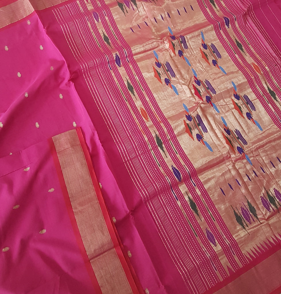 Pink cotton handloom paithani. Saree comes with running blouse piece.