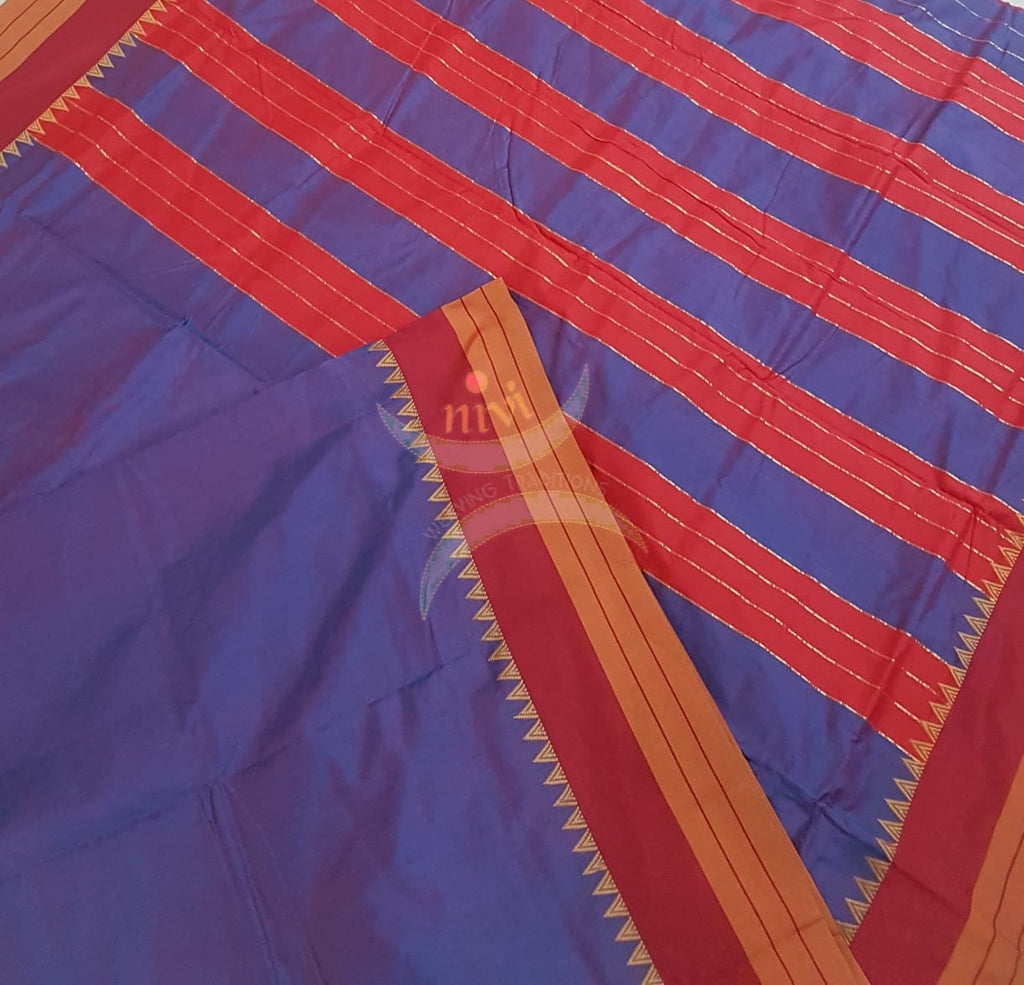 Purple Cotton blended woven saree with temple border. Saree comes with running blouse.