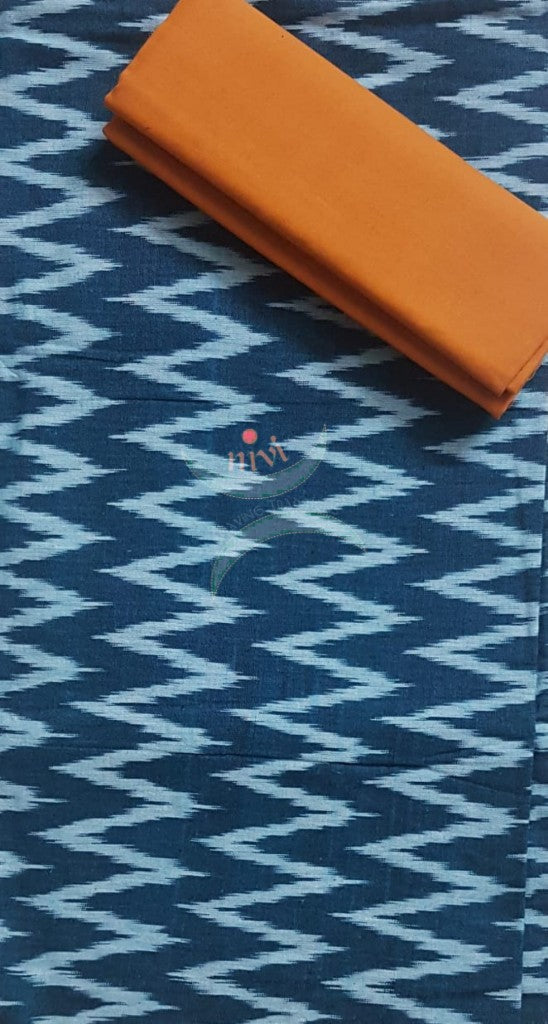 Teal and mustard combination handloom pochampalli ikat 3 piece suit set.